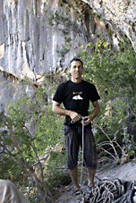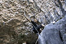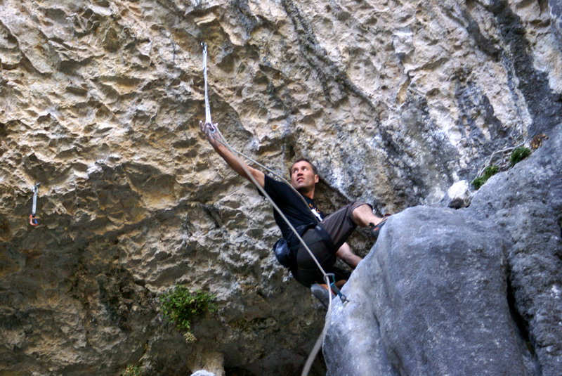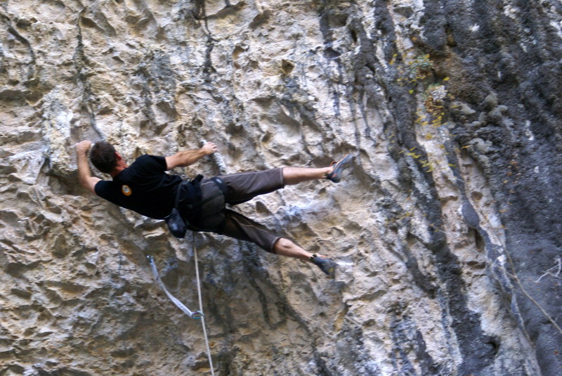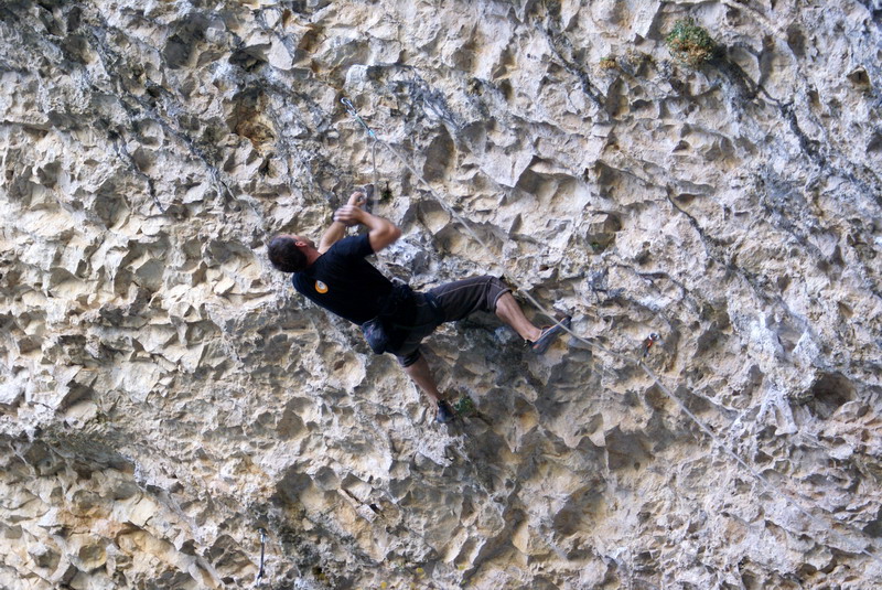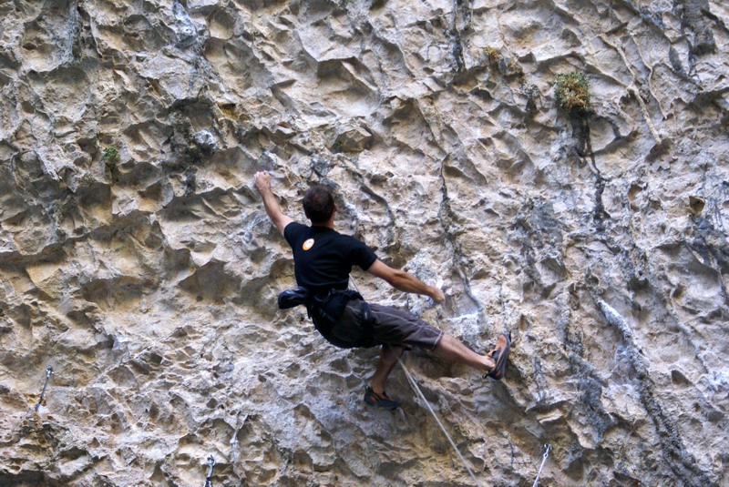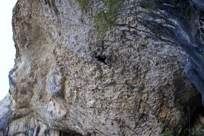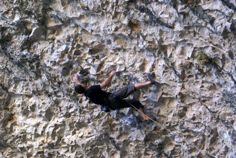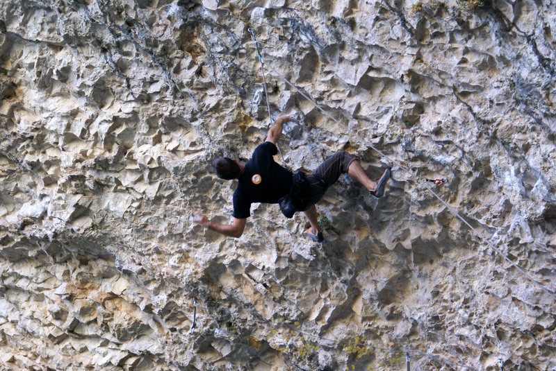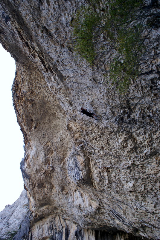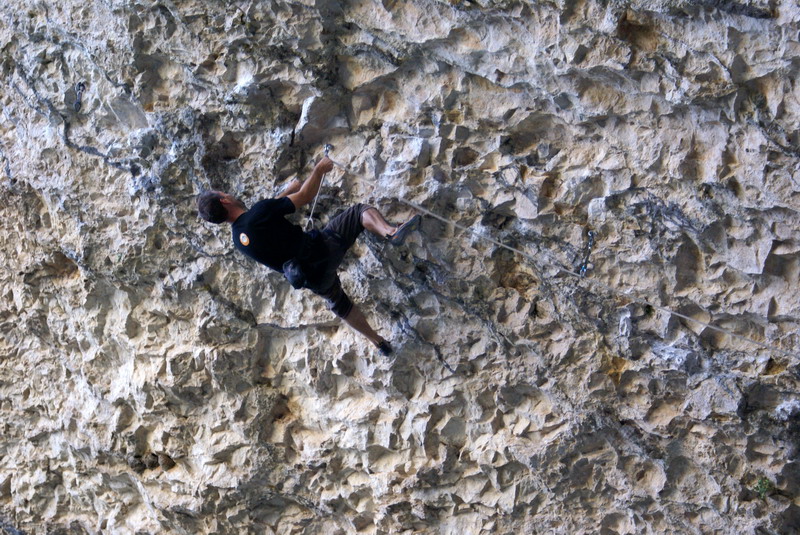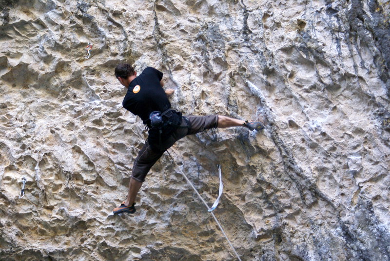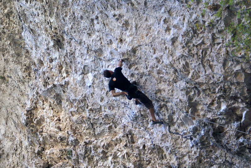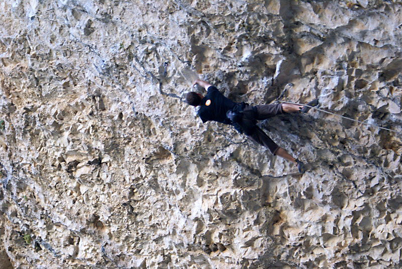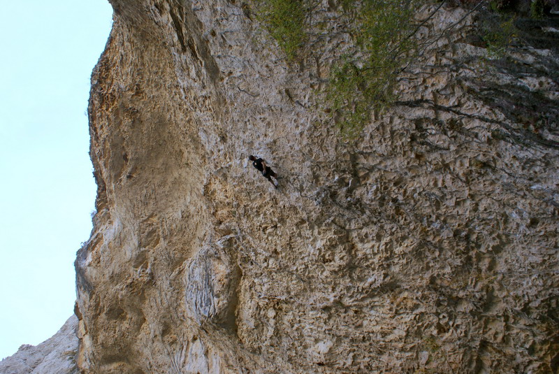 ...За два дня до этого, мне удалось пролезть трассу Argo (Арго), 8а, вместе с Димой Вороновым, и Дима, после обоюдного удачного прохождения маршрута, предложил полазить его новый проект – Коридор Смерти. Так как я падок на всяческие ритуалы и эзотерику, название трассы сразу вселило в меня оптимизм... :) В общем, после разминки мы отправились в La Surgencia. Когда я увидел маршрут, я чуть не обалдел... Но все же, он понравился мне сразу, с первого взгляда – красивый, очень длинный и сильнонависающий...