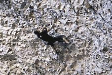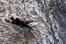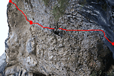 ...Маршрут El Corredore de la Muerte состоит из двух частей: первая (8а), идет до первой цепи, сначала по сильному нависанию с лазанием примерно 7с, потом тяжелый боулдеринговый ключ – нужно «на вытяжку» взять подхват (который, кстати, совсем не маленький, но практически потолочное лазание, большое расстояние от предыдущей зацепы и отсутствие нормальных зацеп для ног, делают это место очень сложным), и сделать с него длинный «крест». После этого, маршрут выполаживается, начинается очень техничное лазиние по «мизерам» и покатостям, и ... цепь. После этого, место для отдыха, два колонета-«ручки», на которых можно сброситься (но руки там отпускать нельзя), и вторая часть маршрута – практически полный потолок с большими зацепами, лазание там уже легче, уровня где-то 7б, но так как отдохнуть нигде толком не получается, дается оно с большим трудом. Ключ во второй части тоже есть и тоже с подхватом. :) Самое интересное это вщелкивание последней оттяжки, после потолка опять начинается вертикаль с «мизерами», и нормальная финишная зацепа выше цепи... Последняя прощелкнутая оттяжка находится на потолке и веревка уходит за тобой вниз, как в пустоту...