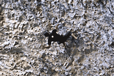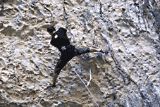 ...Мой вариант прохождения ключевого места, думаю, был не самым лучшим по техничности и трудозатратам, особенно, после перехватов 30-ти первой части маршрута, но теперь я точно знал, как все делать и в себе не сомневался... После ключа очень тяжело дались несколько метров вертикали и, наконец, вот они, «ручки»... Я постоял там минут 7, потому что боялся потерять тонус в мышцах и двинулся на второй потолок. На ключе второй части я чуть не упал, нагружая подхват, опять неправильно поставил ноги, но спас меня «мизер»-прихват, который я практически в падении зафиксировал. Потом были проблемы с последней оттяжкой, я «забился» настолько, что уже не чувствовал сил встать с «мизеров» на финишную зацепу, пришлось неимоверными усилиями прощелкиваться с «мизеров», но все получилось... :)