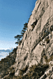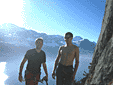 Мы пролезли ещё трассу и решили устроить перерыв. Залезли повыше, пофотографировали горы, озеро, скалы, девушку на скале, друг друга :) Потом плотно перекусили и стали лазать дальше. Вскоре освободилась единственная 6б, которую до этого занимала другая пара, - и мы тут же решили ее "опробовать". Не без зависов, я её все-таки залез, надо сказать не самая простая 6б из тех, которые мне довелось полазить не на скалодроме. Опыта ещё маловато лазания по скалам (это был 2й раз) да и срываться очень не хотелось, потому что трасса была вертикальная, а местами положительная, и с большой "полкой" посередине. После меня её с верхней веревкой пролез Роб - пыхтел он не хуже моего, но залез :) Потом пролезли ещё пару трасс попроще и решили заканчивать.