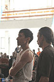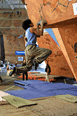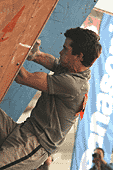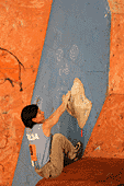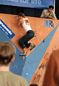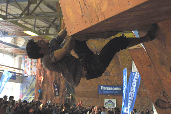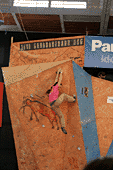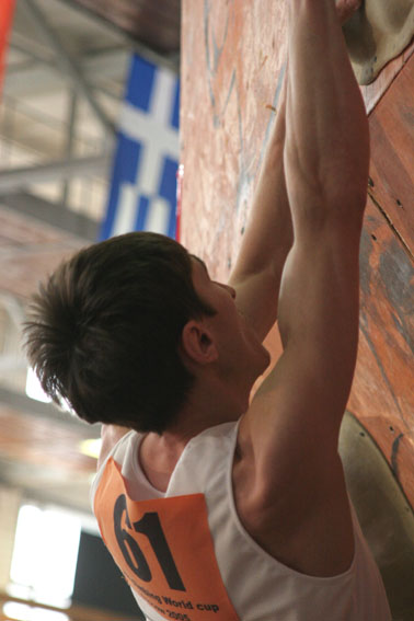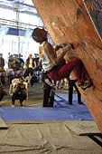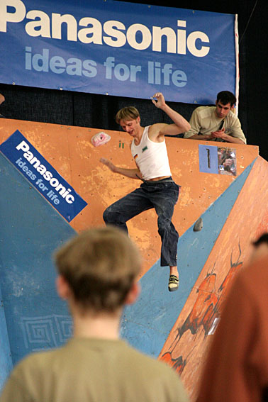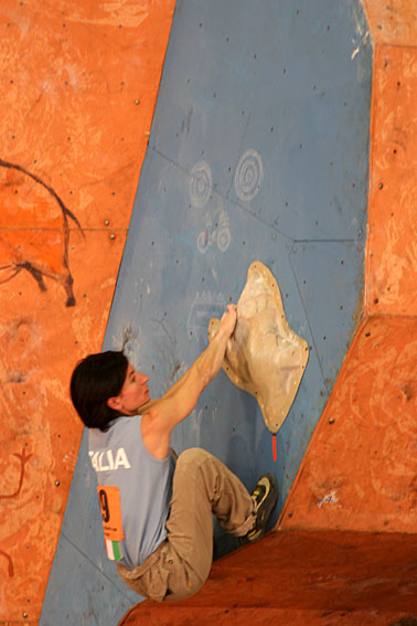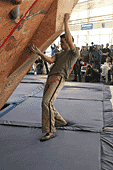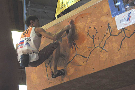 Третья трасса. Пассивные рельефы (из тех, по которым шла накрученная Салаватом 6с, чуть правее волны, старт с «улитки», только улитка эта висит на потолке…) Безуспешные попытки стартануть. И так, и сяк, и наперекосяк. Не получается. Стартануть удалось лишь троим, они и берут бонус. О топе не идет даже речи. Жаки явно перестарался. Четвертая трасса. До бонуса она раскладывается, топ опять не берет никто. Это уже становится однообразным. Подготовщики в один голос утверждает, что Жаки при накрутке пролез все трассы без проблем. Может, им поменяться ролями? Может, Жаки имеет смысл тряхнуть стариной и сделать всех этих мальчиков? Пятая трасса. Топов нет. Все расслабленно перетекают к шестой. И, наконец, два топа на шестой, что и приносит победу их владельцам, французу Жерому Мейеру и итальянцу Кристиану Коре. Всего лишь на шаг от победы был Салават Рахметов, но увы, топа не сделал. Даются две перестартовки участникам, у которых что-то там не то замусорилось, не то прокрутилось, но перестартовки расклада не меняют. Соревнования закончены.