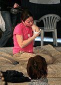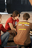 Первое ощущение: куда мы попали? Нет ни бегунов, ни легкоатлетов, ни прыгунов с шестами. Никого! Весь манеж наш! Исчезли скалолазоуловители. Вдоль стенки стоят шикарные красавцы-грибы, напротив ряды стульев. Впрочем, их практически не видно из-за толпы народа. Неужели в Москве так много скалолазов? Ах, да, здесь же не только Москва. Знакомимся в реале со своими друзьями из Украины – встреча как нельзя кстати – мы уже договорились вместе лазать в Крыму. На входе в манеж – металлоискатель и много-много милиционеров. При проходе через металлоискатель мне вежливо предлагают положить фотоаппарат на столик рядом «а то еще сотрутся все ваши фотографии». В зале нарастает напряжение. До начала осталось совсем ничего.