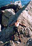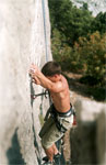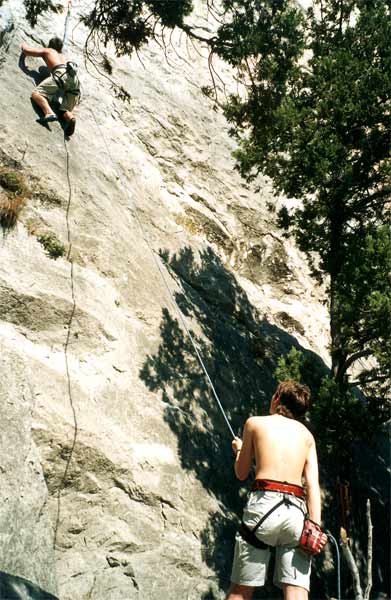 И вот пришёл час моего первого покорения скалы. Место: Никитские карьеры, трасса: "Северный полюс", степень сложности: 5а. До этого момента к моим достижениям можно причислить разве что лазанье по яблоням и заборам, стоящими преградой к этим самым яблоням… Хорошо, что в августе Павка сводил меня в ДДС и провёл первое ознакомительное занятие для "чайников". Там то и были опробованы первые восхождения. И скажу честно - так страшно мне ещё никогда не было.