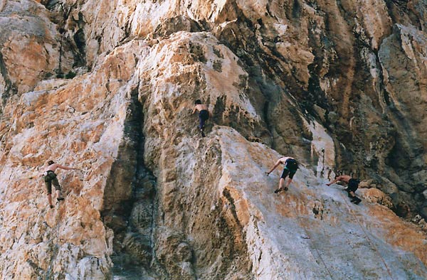 По началу мне даже понравилось: хорошие зацепки, тёплый ветерок, отличная группа поддержки! Однако вскоре первая же попытка глянуть вниз намертво приклеила моё похолодевшее от ужаса тело к каменистому рельефу. И никакие убеждения о полной безопасности и крепкой страховке не могли сдвинуть меня с места.