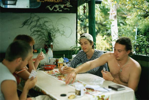 Вечерние трапезы по началу проводились в одной из местных кафешек (см. фотки). Но пенёнзы таяли здесь стремительно и безвозвратно :-(…. Поэтому про полюбившийся лагман вскоре пришлось забыть и устроить соревнование между собравшимися парами и одним трио по приготовлению самого вкусненного ужина. И пока одни из участников коптили небольшую летнюю кухоньку, остальные в полном объёме наслаждались дарами крымской экзотики - инжиром и вином.