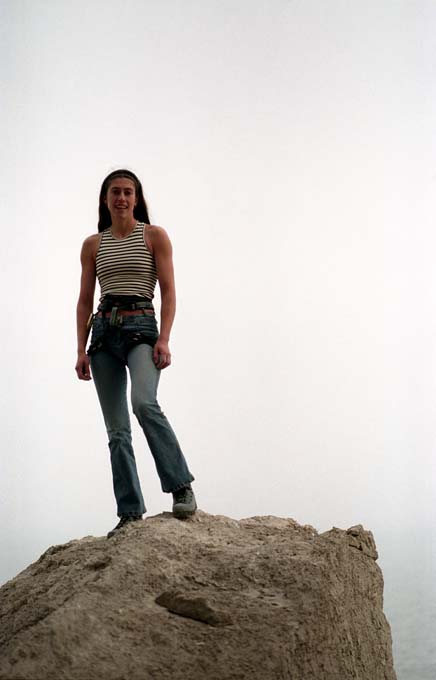 что скалу не видно доверху, а камни влажные на ощупь. Лазали мы в Никите,