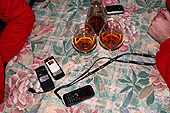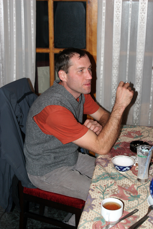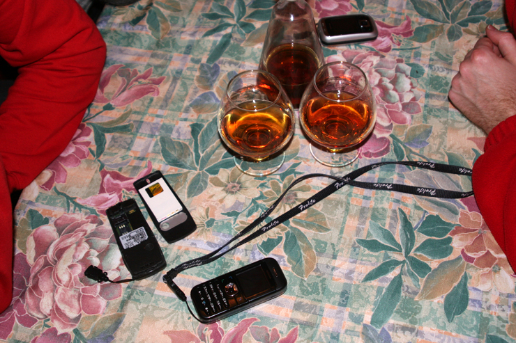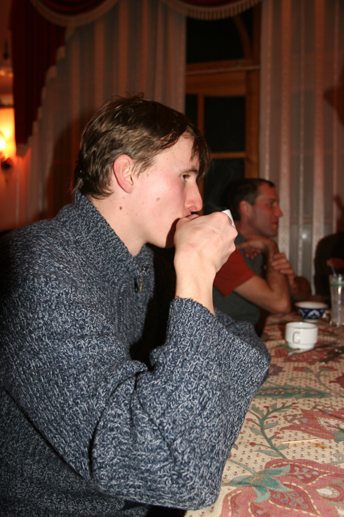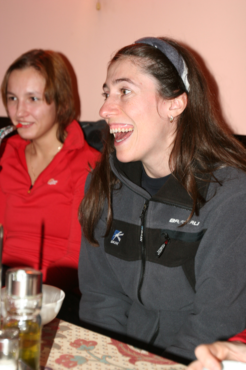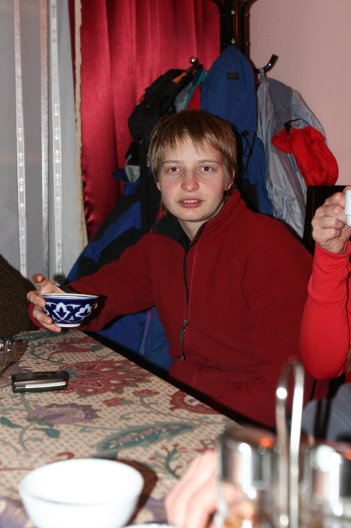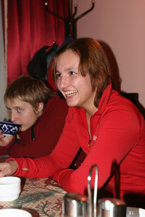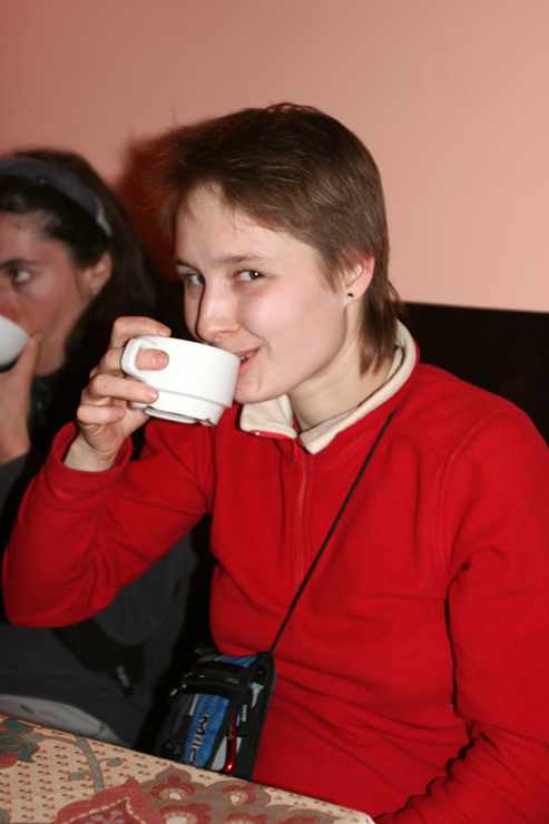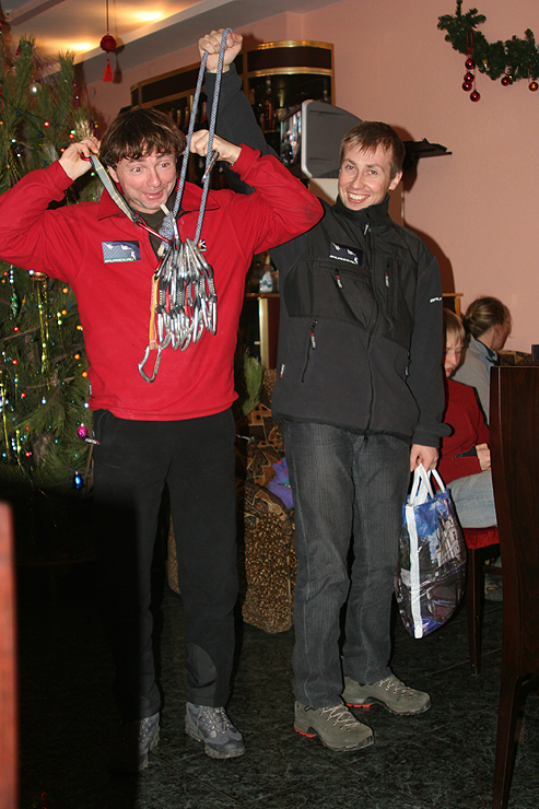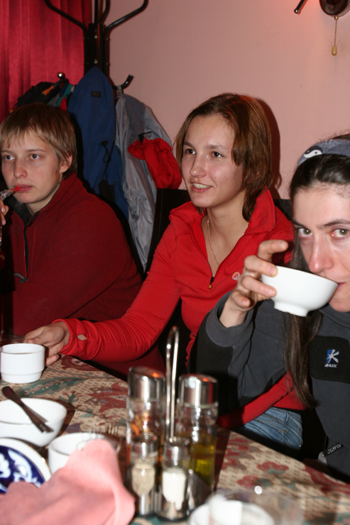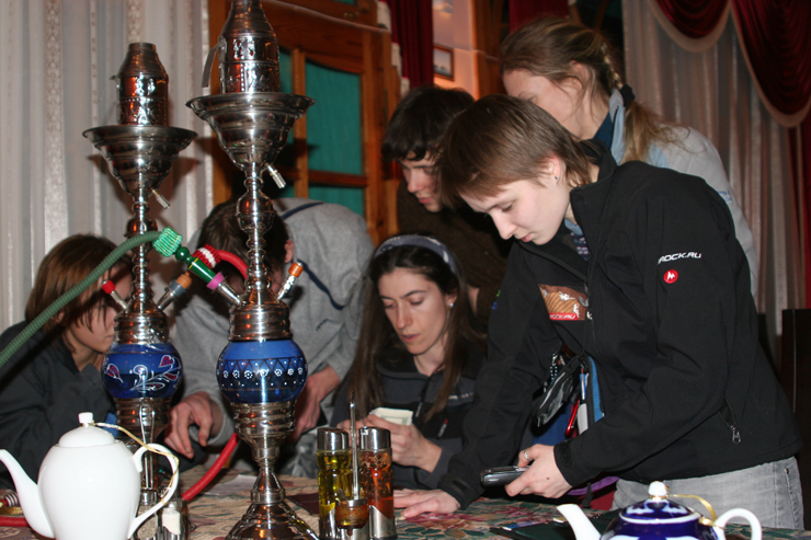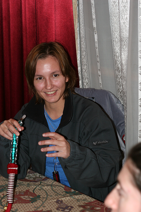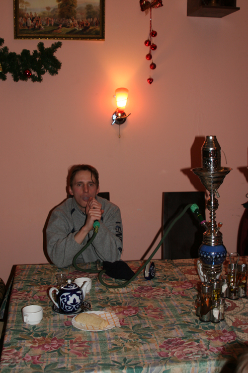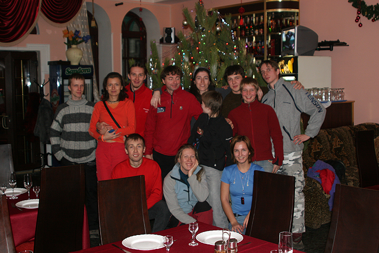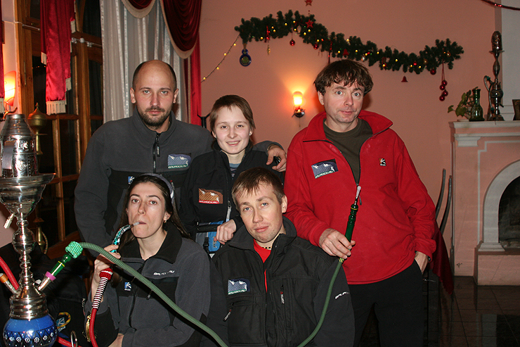 Для начала мы прочно угнездились в «Азры» (или «Арзы»? за долгие годы я не сумела этого запомнить). В ресторанчике стояла украшенная елка, было почти тепло и довольно уютно, группками сбредались скалолазы, душа отдыхала. Путем многочисленных ухищрений, переходящих в угрозы, нам удалось убедить персонал приготовить нам если не глинтвейн, то хотя бы просто горячее вино, и теперь мы наслаждались этим напитком богов, черпая его из стоящей посереди стола ночной вазы (попытка персонала отыграться) половником. Вечер плавно перетек в ночь. Мы отметили московский Новый Год, потом украинский, запустили припасенные Шуриком петарды, и, не мудрствуя лукаво, пошли спать.
