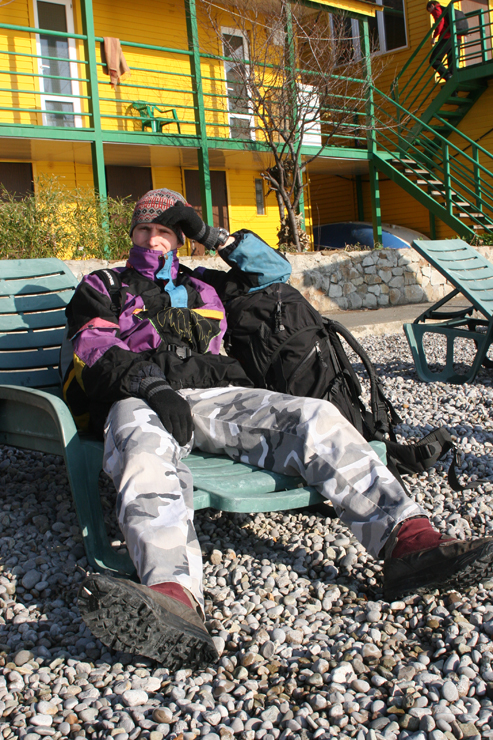 Побросав вещи, мы отправились перекусить. Единственным работающим заведением в такую рань были «Ежи», и весь завтрак Сережа судорожно оглядывался по сторонам в ожидании тихо подкрадывающихся к нему со спины постоянных обитателей этого места. Мы вновь спустились к гостинице за снаряжением и вновь побрели вверх, к Кошке. Я очередной раз ощутила нехватку дыхания, ноги вмиг стали чугунными, я очередной раз пообещала себе начать бегать, как только вернулась в Москву, мое второе я очередной раз ехидно упрекнуло меня во лжи, первое я с ним молча согласилось, и оба я, тяжело дыша, продолжили всползать наверх. Лень наказуема.