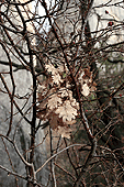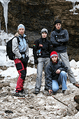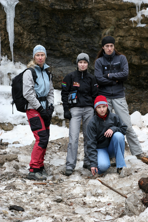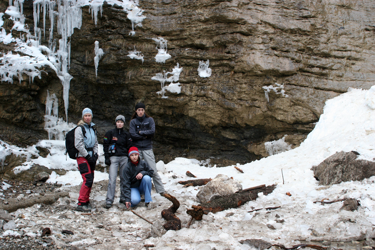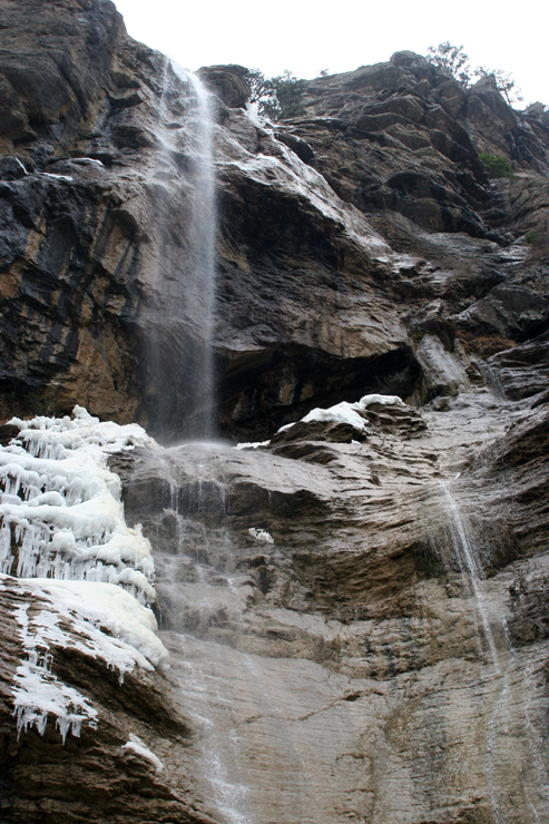 Машину мы в этот раз не брали, поэтому до водопада пришлось топать от маршрутки на своих двоих. Вверх по дороге. Километра три. У водопада гуляли сытые туристы, рядом звучала музыка, продавались сувениры. С видом сосредоточенным и таинственным мы открыли небольшую калитку с надписью «проход воспрещен» и полезли вверх по полусгнившей лестнице. Лестница привела нас к орлу. Залезать на него на этот раз никто не стал. Орел был мокрый, грязный, и абсолютно неэротичный. Водопад замерз. То есть, он тек, конечно, но вяло. В основном он свисал вниз величественными ледяными каскадами. Будь среди нас ледолазы с тяпками, в процессе этого созерцания, у них самих давно отросли бы сосульки из потекших от восхищения слюнок. Однако, ледолазов не оказалось. Мы угрюмо покосились на водопад и направились дальше, к нашей цели.