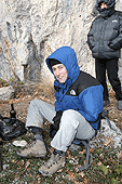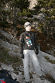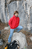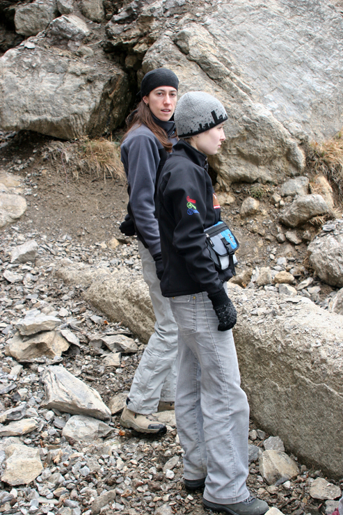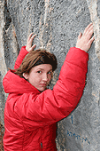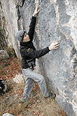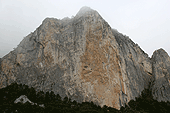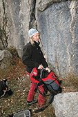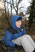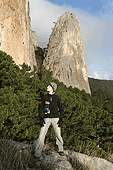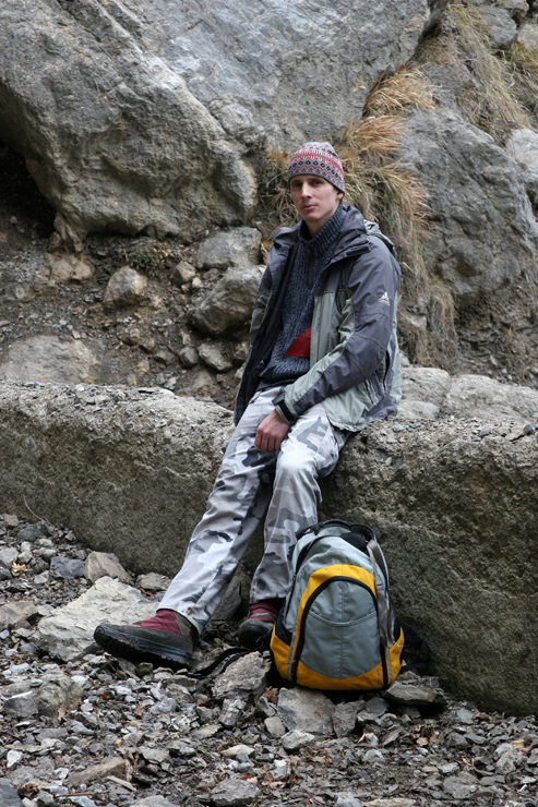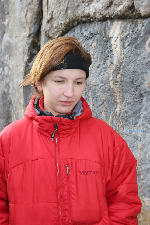 Мы уже почти у самого подножия. Идем мимо огромных валунов, на которых подписаны боулдеринговые маршруты. Если честно, впервые вижу живьем святилище матрасников. Интересно, но тапок с собой нет, пальцы замерзли в ноль, о матах я и не говорю. Так что просто впитываем глазами. Все. Дошли. Прямо перед нами на скале висит гроздь альпинистов. Говорят, что пятый день уже тут висят, новый маршрут бьют. «И вы это, господа скалолазы, отошли бы нафиг от маршрута, а то сверху камушки могут посыпаться, а касок ведь у вас не водится».
