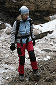 Светило солнышко. В голову пришла вторая трезвая мысль «Ну, убьемся мы вряд ли, а покалечимся наверняка. Да и как мы будем остальных сюда втаскивать?? А этот траверс…» Я сидела на верхней площадке и навязчиво ныла: «Мужики, мне кажется, нам надо поворачивать назад… Мы здесь всех не затащим. А если не дай бог затащим…» Хорошо что мы не взяли веревок. Если бы мы их взяли, мысль о том, чтобы повернуть назад, не пришла бы в мою тупую башку никогда. Зато в нее пришла другая мысль: «О! Можно связать куртки рукавами и выйдет некое подобие веревки! И всех по ней затянуть наверх» Эта потрясающая своей новизной мысль ненадолго прекратила мой скулеж, но скоро здравый смысл преобладал, и я продолжила ныть.
