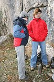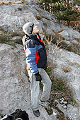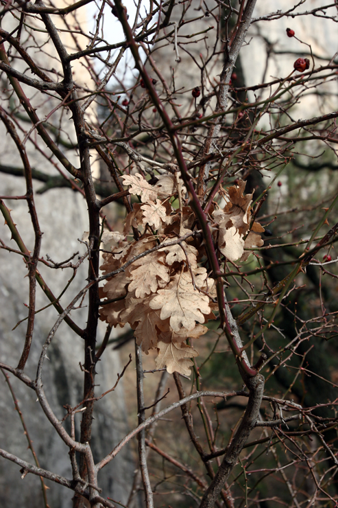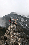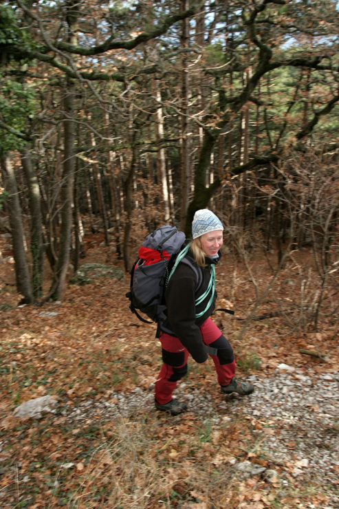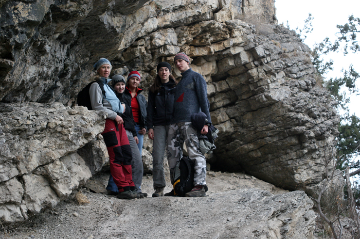 Тропинка, казавшаяся летом такой прочной и удобной, сейчас превратилась в труднопроходимое нечто. Она была влажной, осыпалась вниз, и я сильно засомневалась в успехе нашего предприятия. Впрочем, о том, чтобы повернуть назад, не могло быть и речи! В некоторых местах мы переползали, придерживаясь руками за скалу, в других перепрыгивали через осыпи, рискуя улететь вниз, но никто не ныл, и это было здорово. В одном из мест нам показалось, что тропинка закончилась и именно здесь надо перелезть по скале метра три наверх, чтобы попасть на другую тропинку. По крайней мере, именно такие манипуляции мы проделывали три года назад (это мы помнили), но вот в этом ли месте?