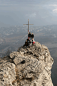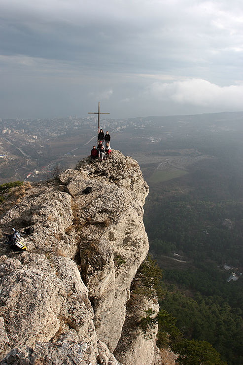 На следующий день мы решили, что хватит лазить и пора отдыхать. Местом отдыха была выбрана одна из вершин в районе Учан-Су, куда можно подняться, пройдя мимо водопада с орлом. Там внизу еще ручей с ванной молодости. Короче, более точно описать место я не могу в связи со своим врожденным топографическим идиотизмом, но вы все наверняка его знаете. Мы были там три года назад с НикВасом, а так как в Сереже, в отличие от меня, вшит встроенный GPS , и он всегда находит места, где мы когда-либо побывали, то произнеся нечто нечленораздельное типа «ну, помнишь, мы там наверху еще вино пили, а еще там крест, а под водопадом орел стоит, на которого мы все залезали и пристраивались сзади» я могла быть уверена, что он меня понял, и мы придем туда, куда надо.