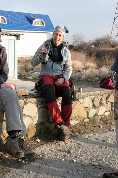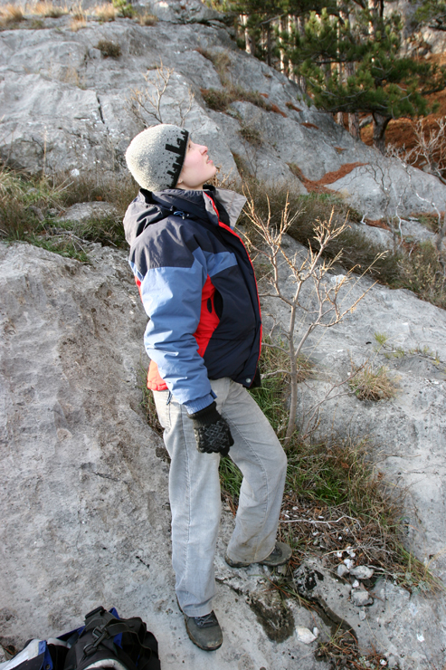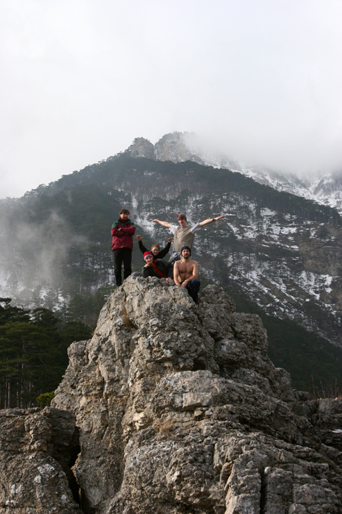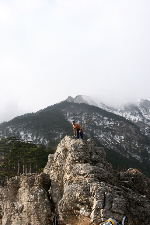 Опять тяжелая работа. 6а. Разогреваем ледяные пальцы. Пальцы намялись о скалу, согрелись и пульсируют. Провешиваю Медуном 6с+ и насасываю ее. На первом ключе уже напрочь забываю о том, что сейчас не лето, и радуюсь, что полезла в майке. Излишне плотные штаны все же мешают. Оседлав выступающий бульник под вторым ключом с интересом смотрю на греющихся внизу людей в пуховиках и шапочках. Все, на сегодня хватит. Отбой. Массандра. Пьянка в Ялте с киевлянами. Пьянка в Ежах. Пьянка в гостинице. Уффф. Спать.
