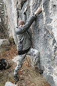 «Сейчас я залезу наверх и посмотрю, что там», сказала я и бодро полезла наверх. В этот момент было бы своевременно вспомнить фразу: «Самое страшное в горах это скалолаз». Но я ее, разумеется, не вспомнила. Я и позже, в Москве, ее не вспомнила, мне напомнили ее, когда я рассказывала об этом замечательном приключении. Скала была влажной, вертикальной, перемазанной в глине и сыпучей. «Максимум 5а!» самодовольно подумала я и долезла до небольшого наклонного уступчика, на котором росло чахлое деревце. В этот момент я поняла, что в прошлый раз мы явно шли не здесь. Передо мной было еще метров пять вертикальной стены, их в тот раз точно не было. Сережа и Шурик вылезли за мной, остальные ждали внизу.