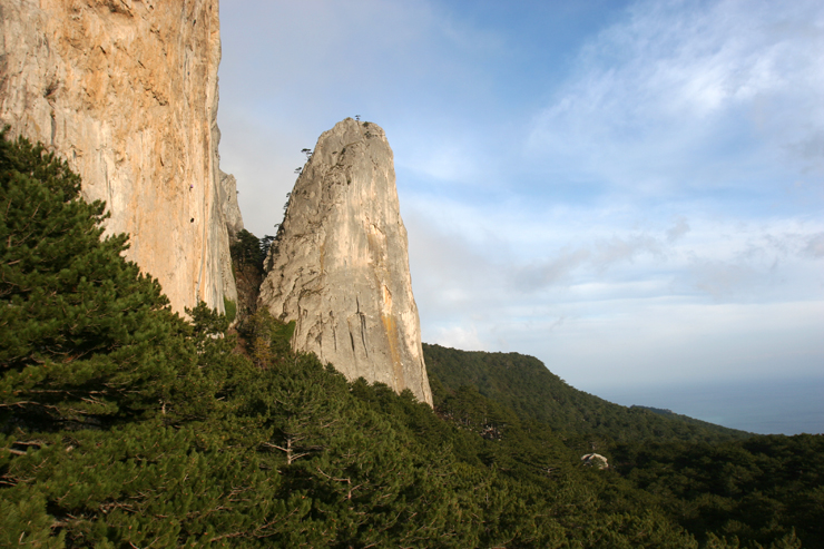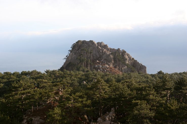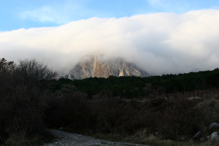 Наверху лес заметно редеет. Впереди видна Шаан-Кая. Красивая. Очень красивая. Будь я мужиком, наверное, сравнила бы ее с женщиной. Но это было бы неправильно. Она красива настоящей мужской красотой, не той, что из глянцевых журналов, а по настоящему. Наверху очень ветрено. Я впервые в жизни понимаю, что понятие «ветер сбивает с ног» это не просто красивые слова, а реальность. Когда налетает порыв ветра я нагибаюсь, хватаюсь за чахлые кустики и стараюсь удержаться на ногах. Я взмокла пока шла, пуховик в рюкзаке, я в расстегнутой поларке поверх термобелья. Ветер пронизывает насквозь. Будь это в Москве точно заболела бы. Но здесь не Москва, выживу.
