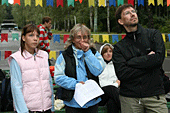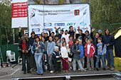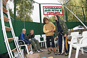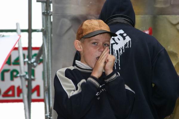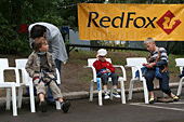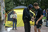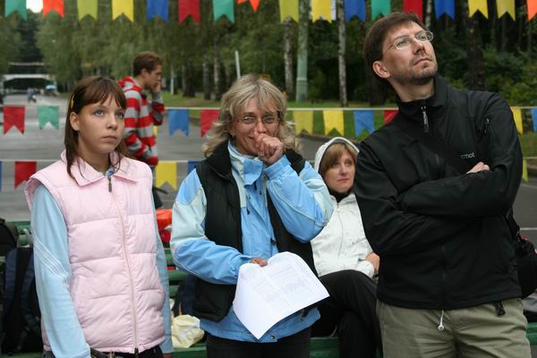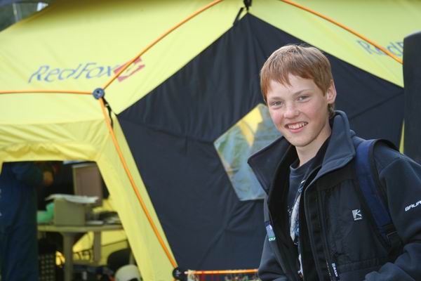 Накануне дождь неоднократно отрывал монтажников от щитов и заставлял прятаться в большой редфоксовской палатке. Жёлтая половинка огромного футбольного мяча оказалась на редкость практичной – вместительная, устанавливается на любой поверхности без дополнительных оттяжек, смотрится прилично. Там же, в день стартов поставили секретарский комп.