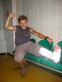 Сегодня в ДДСе произошло ЧП. При срыве с пятой оттяжки при прохождении правого пуза Серега сломал ногу при ударе о стену. Подробнее: дойдя по пятой оттяжки на грани срыва, Серега взялся за оттяжку левой рукой, после чего правой рукой выбрал веревку для вщелкивания. Не успев вщелкнуться, отпустил то и другое и полетел вниз. При страховке я находилась в метре от стены, страховала на восьмерке. Так как был выбран большой кусок веревки, выпустить еще не решилась. Напротив, попробовала немного выбрать. В итоге суммарный срыв был метра два - два с половиной. При срыве с оттяжки Серегу развернуло, и весь удар пришелся на левую ногу. Сломалась (вернее, треснула) маленькая косточка в подъеме ноги. Прошу устроить подробный разбор полетов, предположить, что было сделано не так, и указать на ошибки.
