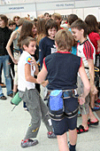 Ну, квалификация это всегда суматоха. На наш фестиваль заявились, наверное, почти все юные скалолазы. Только предварительных заявок было получено почти 200. Помимо московских спортсменов выступали еще ребята из Твери. Все хотели показать свои достижения, многие пришли участвовать в первый раз. Стартовые протоколы составлены, участники бегут парами, меняясь трассами, судья дает команду старта, судьи на трассе фиксируют время. Страховщики бережно спускают детей, болельщики, тренеры активно поддерживают лезущих, каждый болеет за своего или того, кому симпатизирует. Исходя из собственного опыта и не только в скалолазании, хочу заметить, поддержка играет огромную роль. Ты бежишь, лезешь, а сзади тебя толпа подбадривает криками, «Давай-давай!», «шагай-шагай», «бегом!!!», «быстрее, аааа!!!» и подобные эмоциональные возгласы придаю большой стимул скорее рвануть вверх и добежать до финиша.