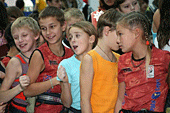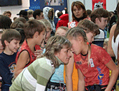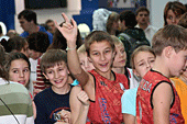 Кажется, только начали, оказывается, в этом бесконечном движении подходит к концу уже второй день. А детей все не убавляется. Они напоминают «линейку» на первое сентября. Когда они стоят, построившись в ряд, все примерно одного роста, а рядом с ними их тренеры - учителя.