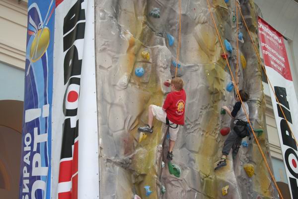 Но потом был перерыв у участников, так как финалы начинались не сразу же после квалификации. И в этот промежуток времени могли полазить все желающие. А их оказалось действительно много. Почти все пролезали по несколько раз и обе трассы. Скалолазание действительно становится популярным, хотя это не самый простой вид спорта! Снизу смотришь на стену и думаешь «как все легко, вот возьмешься за эту, за ту зацепку и долезешь до конца». Но когда ты встаешь на стартовые зацепки и начинаешь лезть, все оказывается далеко не так просто. Зацепки держат совсем не так, как ты думаешь, и хвататься за них не так удобно, как кажется, глядя снизу. Но все остались довольны! И это главное!