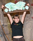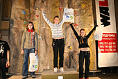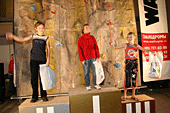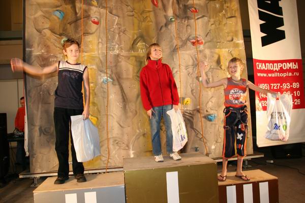 Награждались победительницами красивыми и интересными подарками от «Walltopia»: за 3 и 2 место наградили очень красивыми и яркими зацепками в форме рыбки и иероглифа, а за первое место Наташа Королева получила настоящий фингерборд в форме бабочки! Его вешают на стену и подтягиваются на нем. Очень полезное изобретение. Участницы на пьедестале прямо-таки светились счастьем!
