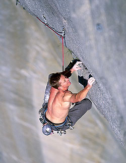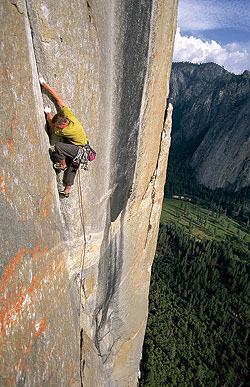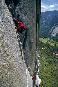 Tommy Caldwell, 25, лучший универсальный скалолаз в Америке, лезущий 9а+ redpoint, 8b+ trad и болдеринг 8В. Он прошел свободным лазанием шесть маршрутов на Эль-Кэп, сделав на трех из них первое прохождение чистым стилем. Это его первая статья для журнала Climbing . |