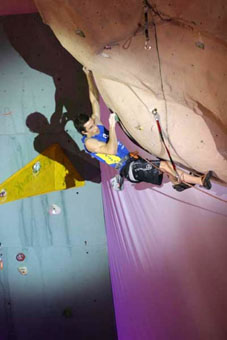 После четырёх метров лазания он чуть не упал из-за провернувшейся зацепки. Схватившись за следующую зацепку и покрутив провернувшуюся, он улыбнулся, но продолжил лезть. Когда он понял, что для того, чтобы лезть дальше, необходимо наступить на вращающуюся зацепку, он покрутил её рукой ещё несколько раз и спустился (в соответствии с правилами IFSC он был дисквалифицирован за то, что не остановился сразу).