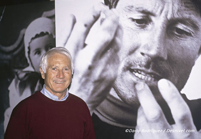 Бонатти похож на спящий вулкан. Ему только что исполнилось 79, это проглядывает только в седых волосах и морщинках около рта. Три десятилетия путешествий и репортажей для журнала Эпока сохранили ему сухую, почти подростковую фигуру. Мы узнаем его руки, орлиные когти. Израненные ледяными скалами Маттерхорна, они были показаны крупным планом в Пари-Матч, когда в феврале 1965 года Бонатти сказал "прощай!" большому альпинизму. Движения Бонатти полны внутренней противоречивой энергией. Этим июльским вечером 2001 года, в саду над озером Комо его атакуют комары. Он хлопает так сильно, что кажется что на месте комаров не устоял бы и слон