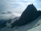 Вышли на ледник. Не скажу, что шлось уж очень бодро, но и особых перегрузок я не ощущал. Единственное, что омрачало столь прекрасный день, так это то, что шли мы очень уж медленно, и от этого мерзли ноги. Метров через 200-300 набора высоты, мы вышли на перемычку между Раздельной и Узловой. Яркое солнце не дало мне возможности расстроиться окончательно из-за замерзающих конечностей, даже наоборот. Я стал подумывать, что зря я не взял с собой сандалии (и шезлонг). Стало сбиваться дыхание и пришлось сконцентрироваться на этом. Вообще, я считаю, для новичков, у нас было сильное отделение, и девчонки, несмотря ни на что шли достаточно хорошо и не падали замертво. А Ленка с Ольгой, на обратном пути, на спуске, когда я решил взять у них интервью, снимая видеоролик, на мой вопрос: