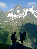 Здесь я вынужден сделать небольшое отступление, и, да простит меня Леха, что я акцентирую внимание на его персоне, но без него поездка, я считаю, не удалась бы! Леха – это человек – бомба. Если, например, представить такую картину: ваза стоит на середине стола не прибитая гвоздями и мимо проходит Леха, я готов спорить с любым, что ваза разобьется. Возможно даже, что разобьется она, даже в том случае если она прибита или приклеена: Леха либо перевернет стол, либо сам на него упадет, ну на худой конец он толкнет соседа, тот толкнет стол и ваза разобьется, хорошо еще, если никто при этом не сломает себе руки-ноги. Вот такой человек Леха. А вообще конечно, если говорить серьезно, он хороший парень, и в горах он проявил себя хорошо, и тащил молча за двоих, и шел, и не скулил, в общем - боец. Кстати, надо отметить, что к концу сбора он стал гораздо собранней и даже не опоздал на поезд.