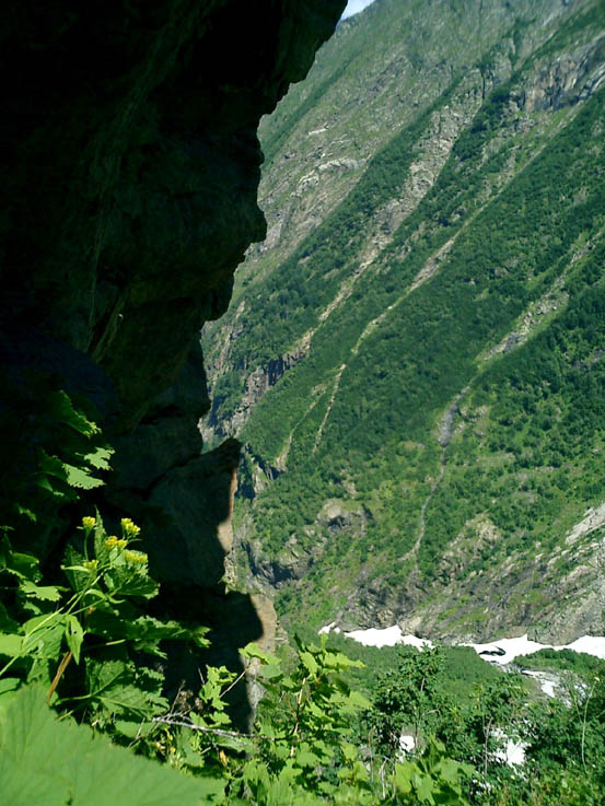 Затем, помню, все собрались перекусить под большим камнем. Наверху, на склоне, висел булыжник. Только сейчас понимаю, что место для обеда было выбрано не случайно. Открывшийся вид заставляел не думать о голоде, хотелось побыстрей идти заниматься дальше.