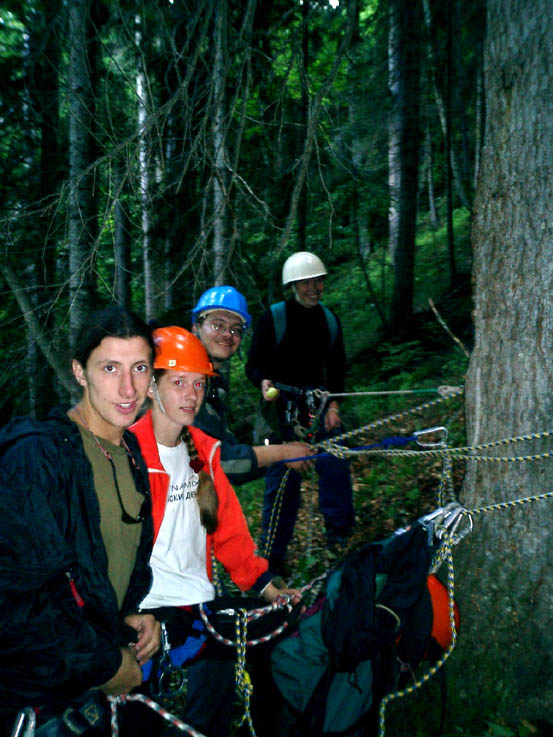 Ближе к вечеру народ потихоньку начинает собираться к завтрашнему выходу. Мечутся тени с веревочками в руках – вяжут прусики. Здесь, конечно, гвоздь программы Ден. Человек-Веревка. Каких только веревок у него нет …и основная, и репшнур, и на петли, думаю у него была даже веревка, чтобы мне удавиться от зависти, но, как я у него ее не просил, он мне ее не отдал. Спасибо ему за это. Так же ему спасибо за то что не дал мне выпить Йаду, когда я заметил, что у него еще есть вагон Здоровья, и еще он отговорил меня начинать курить, потому что я подумал что столько здоровья бывает только у курящих людей. В общем спасибо тебе Ден, ты настоящий друг!
