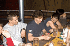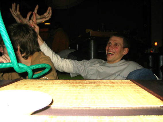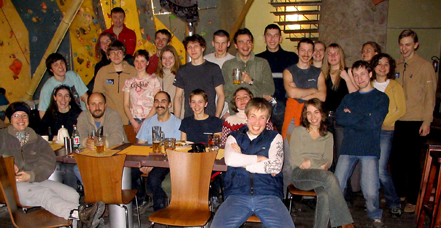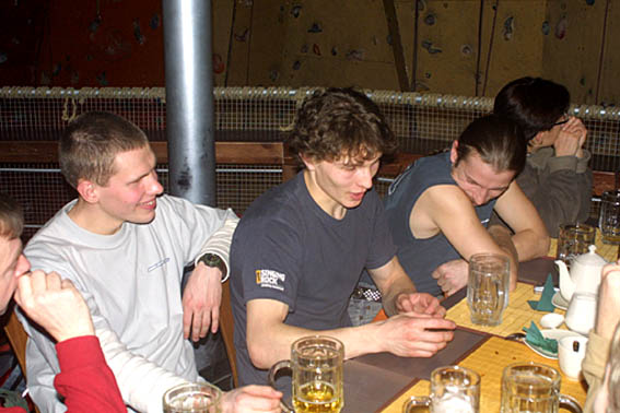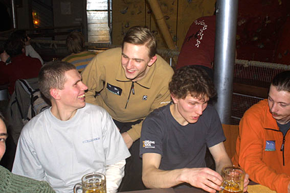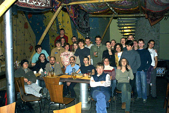 12 февраля 2005 года в "Скала-Сити" прошла вторая встреча участников Баурока. Полазали, попарились, попили пива, потусовались, покурили кальян:) Возникла мысль к следующей встрече наконец организовать художественную самодеятельность, непременно включающую в себя лазание topless. На этот раз топлессом собравшихся порадовал только Britt, да и то ненадолго:) На встрече был также CoSmoLeXa, счастливым образом выбравшийся ненадолго из Швейцарии и осчастлививший всех не только своим присутствием, но и доставкой долгожданных и давно заказанных тапок. Также полуподпольным образом тапки были подарены Анчутке, выигравшей их в тяжелой борьбе со Светополком за лучший отчет месяца. Анчутка стала счастливой обладательницей модели Scarpa Paranoia. Осталось пожелать ей надевать их без слез на глазах:) В общем, все, как всегда, было здорово:)