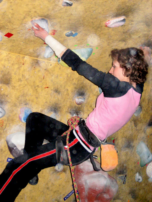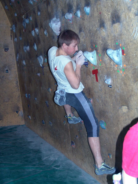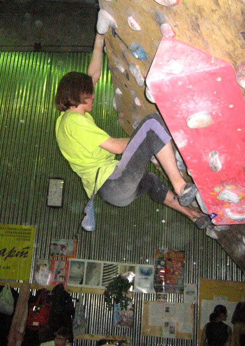Как все, наверное, знают, на скалодроме на Дубровке уже с 7-го марта проходят Открытые соревнования по боулдерингу «Дубровка-3». Там накручена 21 трасса различной степени сложности, в том числе 4 со страховкой и, соответственно, 17 без нее. Чтобы принять участие в соревнованиях достаточно заплатить стартовый взнос 50р и оплатить время лазания. Вновь прибывшего участника записывают в таблицу, которая размещается на входной двери. Таблица делится на 2 части: от б/р до 2 разряда и от 1 до МС. В ней спортсмены ставят отметку TOP напротив нужной трассы – той, которую пролез.