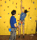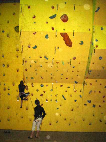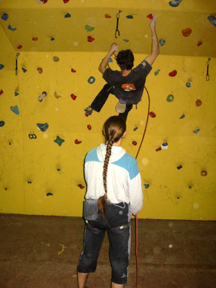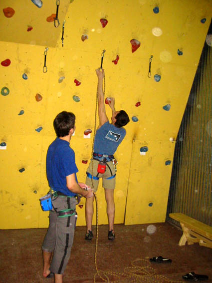 Я бы все лазил с верхней страховкой. Если будут маты, то это будет совсем безопасно! Еще отметил, что скалодром желтого цвета! Он очень пачкается... надо было взять