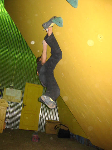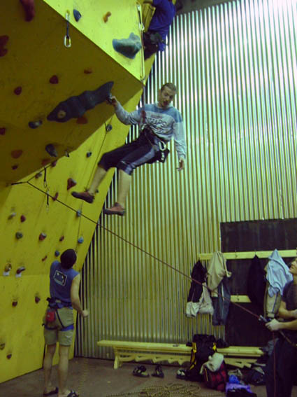 PP: Понравилось: геометрия и планировка скалодрома, неплохие профили, высокий боулдеринговый модуль (жаль еще не закончен), интересные трассы на нависаниях, все зацепки красноярские - за последние два пункта, я думаю, надо бить Шалыгина:-) Кстати, категории заниженными не показались. Еще понравилось, что большие возможности по расширению скалодрома. На первый взгляд кажется, что хорошо подобрана краска в смысле соотношения трение/травмоопасность. А еще очень понравилась цена за тренировку:-)