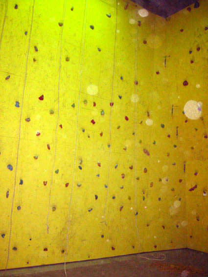 В общем это все мелочи, во многом обусловленные тем, что скалодром еще официально не открылся. Надеюсь, в зале будет зашит потолок, а то при такой высоте (примерно как в Экстриме) тренажер без потолка представляет гораздо меньший интерес - вся трасса 9-12 перехватов на 5 оттяжек - это несерьезно, хочется большего) Очень хочется опробовать боулдеринговый модуль, когда он будет закончен... Если его продолжить направо, а туалет вынести из зала, то получится отличная соревновательная стенка - лучшая в Москве, не считая грибов.