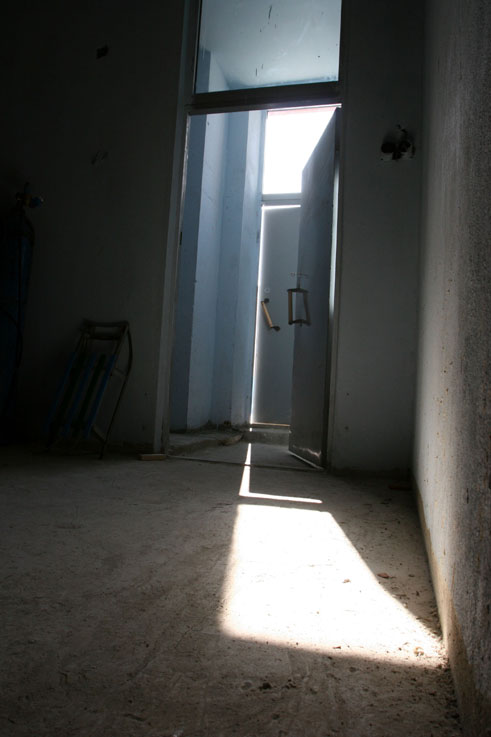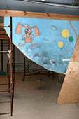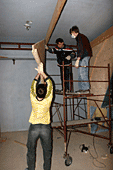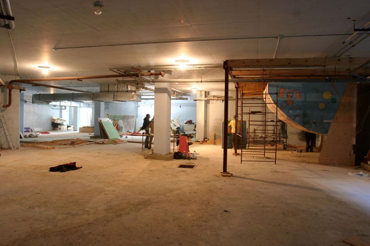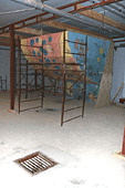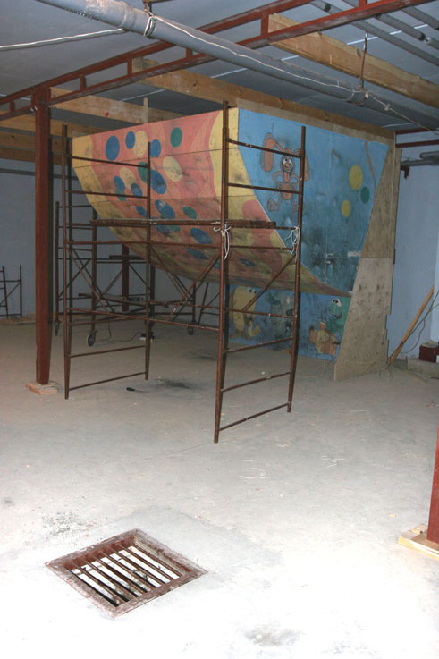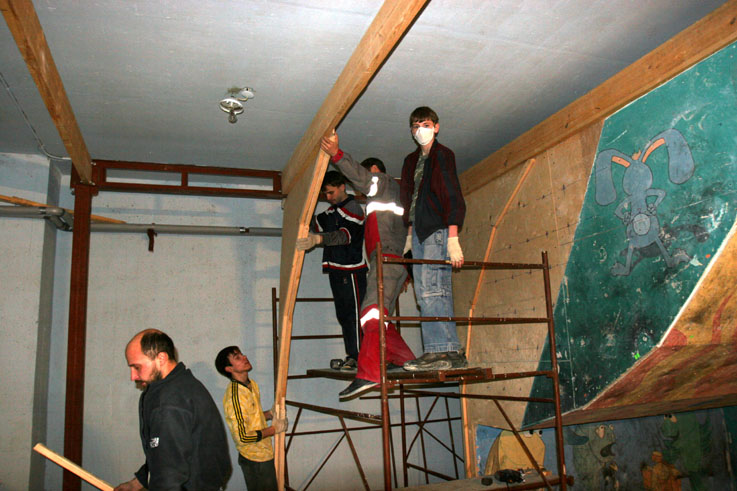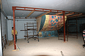 Алексея мы увидели прямо перед школой с неизменной сигаретой в зубах, и прошли за ним в полутемное здание. Когда глаза привыкли к неяркому освещению после ослепительного солнечного дня снаружи, мы увидели огромное помещение неопределенной формы, высотой метра три с половиной - четыре. У одной из стенок не спеша монтировался стенд. «Ну и какую часть помещения займет скалодром?», я с порога взяла быка за рога. Алексей не спеша огляделся вокруг и так же не спеша ответил: «Всю. Около пятисот квадратных метров». (В этом месте я пожалела, что мы не снимаем Индийский сериал. Здесь явно планировался наезд камеры и крупные планы ошеломленных лиц всех присутствующих.)