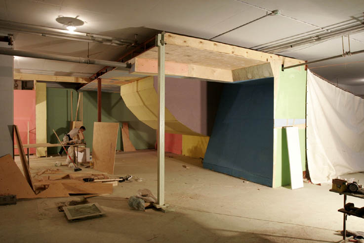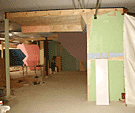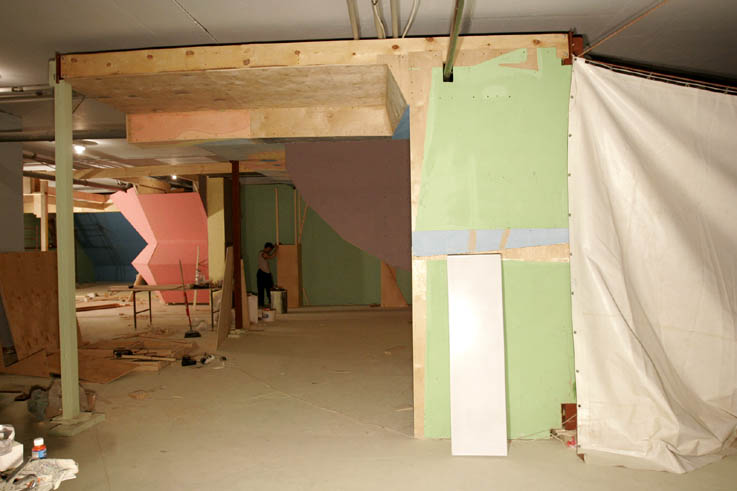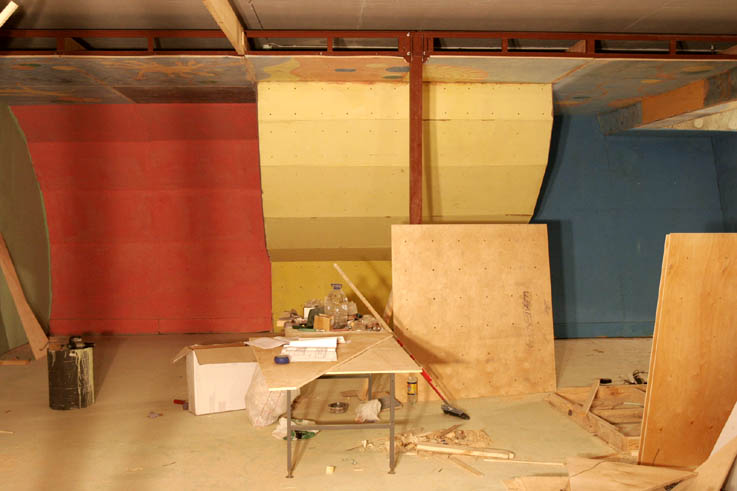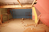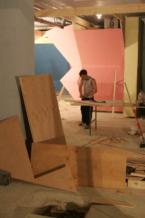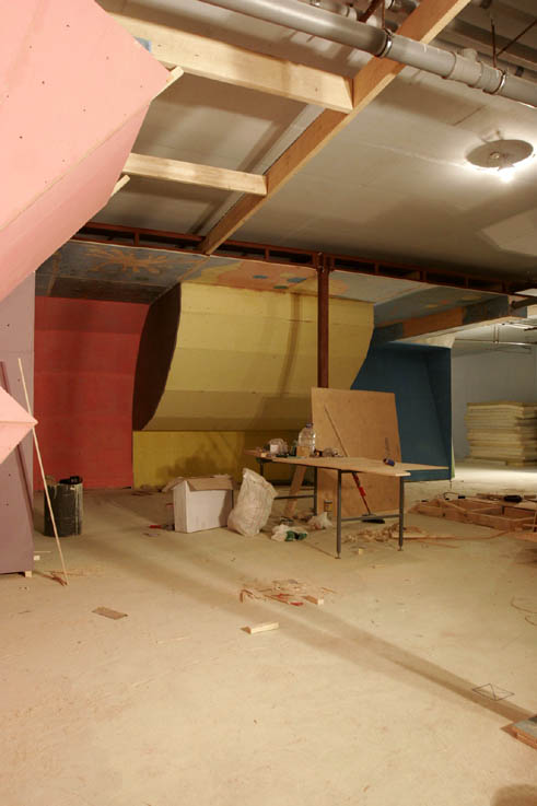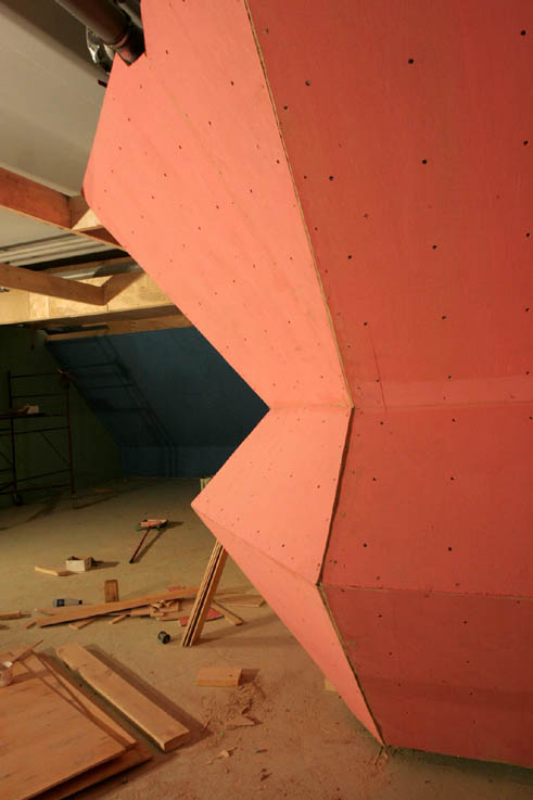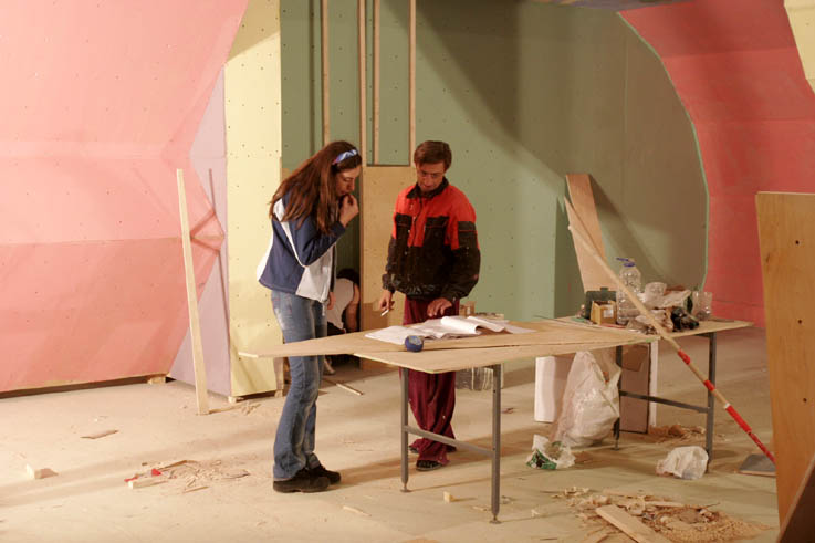 До старта четвертого этапа Кубка России по боулдерингу в Дзержинском осталось меньше недели. И ровно два месяца прошло с нашего последнего посещения нового БЗ в Дзержинском. И что же изменилось с тех пор? Хочется ответить словами анекдота: «Да… ВСЁ!!!» Полностью зашиты и покрашены все стены, при нас ускоренными темпами зашивался потолок (утренняя информация от Кости: «Потолок зашили!»), обрабатывались углы, красилось недокрашенное. Сегодня Олег Черешнев приступит к накрутке трасс для соревнований.