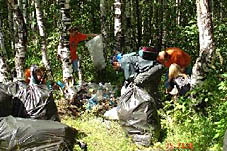 Следующим этапом был сплав по реке Чусовой, Который так же оставил много хороших впечатлений – живописные места, скалы, первый опыт гребли на байдарках для большинства участников «плыли по синусоиде», сама по себе река, прекрасная погода… Нужно отметить, что погода радовала – за все время проведения фестиваля ни разу не похолодало и не пошел дождь, что вдвойне приятно, учитывая непредсказуемый характер Уральской погоды. Все это было прекрасно, однако не радуют глаз следы человеческого присутствия, много мусора по берегам, и на популярных стоянках. Во время проведения экологических акций, участники фестиваля привлекали к уборке мусора обычных отдыхающих, никто из них не отказал в помощи, но такие разовые акции не в силах поддерживать чистоту в лесах.