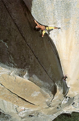 Но и «чистому» боулдерингисту не под силу за одну ночь войти в историю El Cap'a . Для того чтобы «чисто» пройти El Cap, необходимы многолетний опыт, жесткая трудовая дисциплин а и готовность страдать. Для любого первая попытка восхождения так же неприятна как утренний звонок будильника. Восхождение на El Cap может показаться кошмаром, да в прочем так оно и есть. Баулы, жумары, работа с веревкой и все, что сопутствует пребыванию на стене - очень изнуряет. Лазание само по себе является высокотехничным и сильно отличается от однозначных спортивных маршрутов таких как, например, на R ifle. Свободное лазание на El Cap'е в меньшей степени требует сильных предплечий, но в большей мере предполагает владение такими приемами как скручивание, удержание равновесия, энергичных и одновременно плавных движений. Лазание уровня 5.10 может запросто сойти за V 10, особенно для тех, кто не имеет опыта общения с гладкими скалами Йосемит. Я часто думаю о том, что будет, если появится скалолаз с такими сильными пальцами как у Сhris' a Sharma, с дерзостью Leo Houlding'a, настойчивостью Scotty Burk'a и интуицией Warren Harding'a.