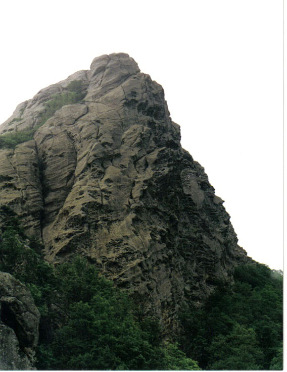 Настоящая гора с явновыраженной вершиной, на которую так же можно подняться без особых усилий. Скалы сильно разрушены. Есть несколько гротов и пещера. Глубина и характер пещеры автору не известны. Здесь есть два сектора, где уже с незапамятных времен народ лазил с верхней страховкой. Так же есть один гребневой маршрут протяженностью около 500м, характером лазанья и сложностью соответствует кавказским "тройкам".