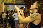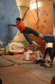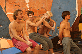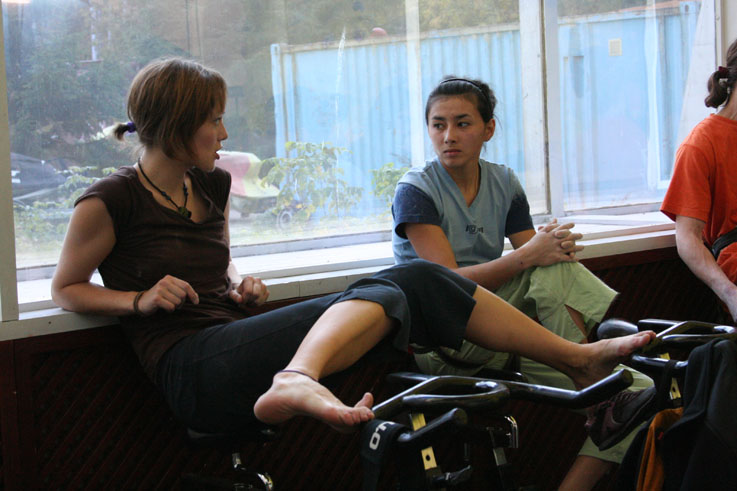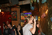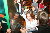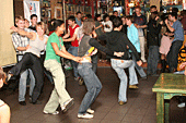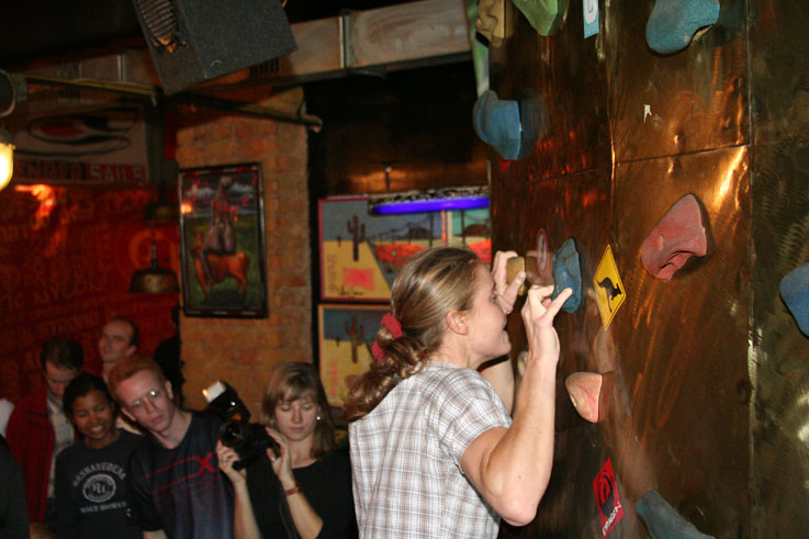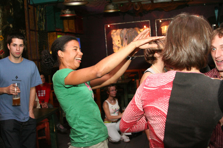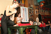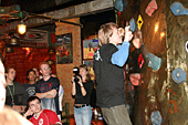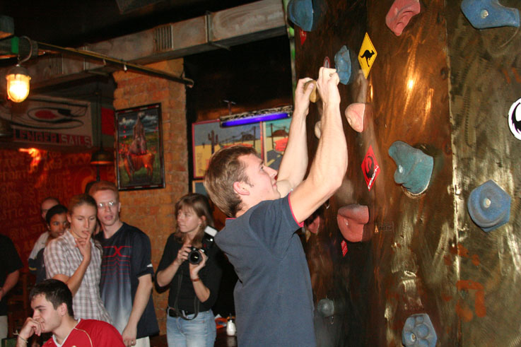 Хорошо хоть кафе-клуб Прогноз Погоды, оказался не только гостеприимным заведением, но и крепким. Едят и пьют скалолазы помалу, но вот веселятся, танцуют и показывают удаль молодецкую - по полной программе.