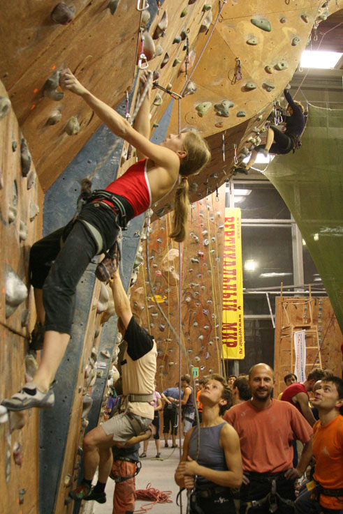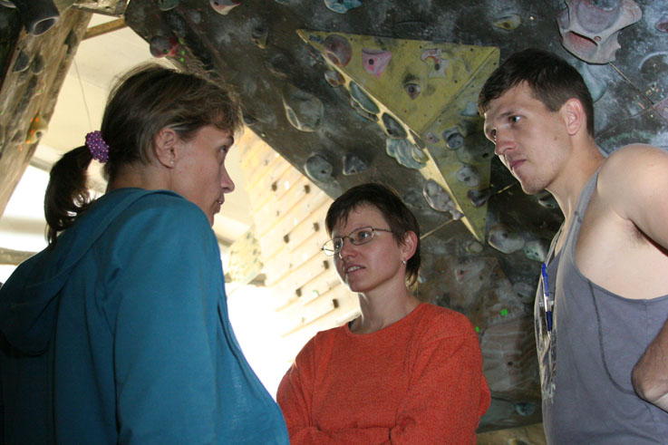 И учились. Как до фестиваля, на нём, так и после его окончания. Заслуживает уважения упорство, с которым участники вновь и вновь подходили к особо «не поддающимся» трассам. Совместные обсуждения других вариантов прохождения маршрутов, попытки осуществить их действительно объединяли случайно подобранных людей в команды, переходившие от трассы к трассе, кочевавшие со скалодрома на скалодром. На аплодисменты ни на скалодромах, ни на награждении также не скупились.