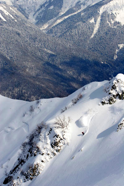Красная Поляна - это активно развивающийся курорт на Западном Кавказе, разместившийся в глубокой долине реки Мзымты, в преддверии Главного Кавказского Хребта на высоте 530-650 м над уровнем моря. Поселок со всех сторон окружен живописными горами высотой до 2500 м, лесистые склоны которых заканчиваются эффектными вершинами. Близость моря делает микроклимат здешних мест уникальным. Доехать до этого места проще простого. Сев в самолет субботним утром Вы уже через три, четыре часа сможете оказаться на снежном склоне. Аэропорт г. Адлер расположен всего в сорока километрах от кресельных подъемников Красной поляны. Доброжелательные таксисты соглашаются преодолеть это пространство рублей за 500. Откатав день можно выбрать место дислокации. Основная проблема, которая возникает в решении этого вопроса это выбор. Он на столько разнообразный что, углубившись в решение его можно забыть про сноуборд. Очень удобно можно размещаться в частных пансионах поселка Эсто-Садок, который местные жители называют сокращенно – Эстонка. Такое проживание обходится в 800-1000 рублей в сутки и наиболее удобно из за того, что располагается всего в километре от канатно-кресельной дороги. В дни проведения II этапа Кубка по фрирайду можно будет воспользоваться бонусом, который местная администрация предоставляет зарегистрированным участникам соревнований. Это 50-ти процентная скидка на суточный абонемент. Пустячок, а приятно вместо объявленных 850 рублей отслюнявить половину суммы. В прошедшем сезоне спортсменам участникам была предоставлена возможность, приобретать абонементы двух видов, на неделю или на двадцать дней. Про снег и качество катания в Поляне можно много сказать, но это отнимет слишком много места, которое всегда ограничено требованием редактора. Думаю достаточно будет взгляда на фото материалы, произведенные на свет в рамках ежегодного промо-тура нашей команды, которую можно посмотреть на сайте www.whiteguides.ru.