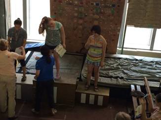 На красном модуле скалодрома ДДС остались две трассы с наших соревнований, категории трудности, приблизительно 5С, с расположенными на них оттяжками для организации нижней страховки. Эти трассы, в силу своей несложности, можно порекомендовать залезть новичкам или маленьким скалолазам, а так же они годятся для разминки.