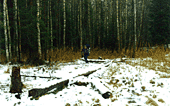 Судя по тишине витающей над Клюквенным кроме нас никого. Птицы молчат. Изредка вякнет какая-нибудь, удивленная нашим присутствием, синица. Под вечер прибыл дятел. Большой, красивый. Жаль, нет телеобъектива. Долго обстукивал сушины стоящие вокруг. Потом обиделся на наши потуги вторить ему топориком и улетел.