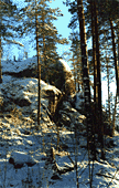 На скалах наледи! Красота! Солнечный свет в них играет и переливается. «Женская спина» в ярком свете выглядит величаво! Оттопыренная часть спины, где теряется благородное название, оттопыривается еще четче. Видимо природа ваяла эту скалу с русской бабищи, которой все нипочем. Скала вызывает желание забраться на неё, но «ручонки зябнуть». Друзья мои «не за» полазать, хотя веревки с собой и дружно мотают головами, я тоже мотаю. Фиг с ним, будем предаваться обломовщине.