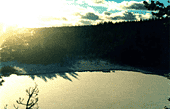 Стоянка встретила нас мертвенной тишиной, замерзшим Клюквенным и тоненьким ярким серпиком месяца, качающем на своих рожках не уступающие ему по яркости звезды.